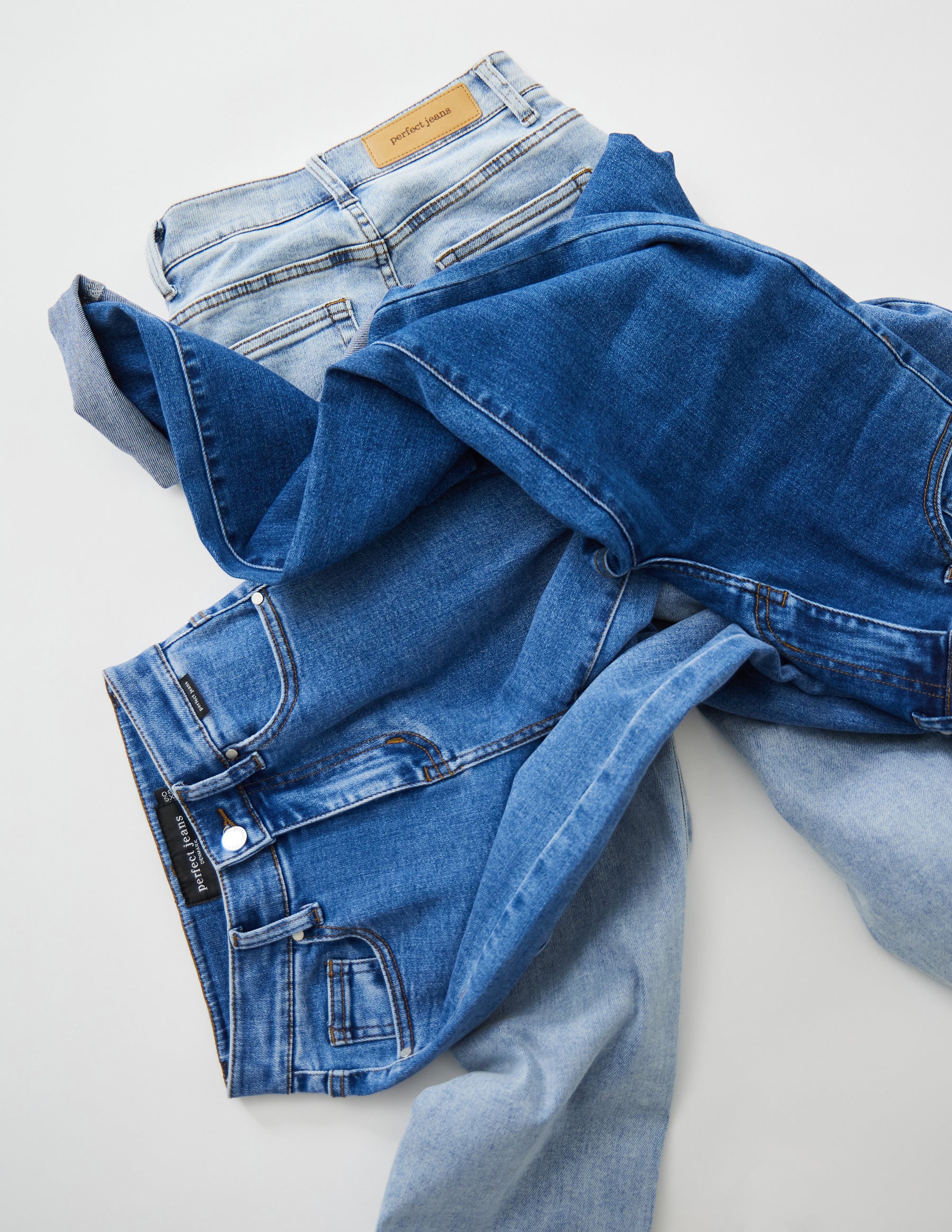 Perfect Jeans er utviklet i et spesielt materiale som gjør dem super elastiske. Uansett hvordan du strekker deg, vil dine Perfect Jeans følge med. Prøv dem, og vi garanterer at du aldri vil gå tilbake til dine vanlige jeans.